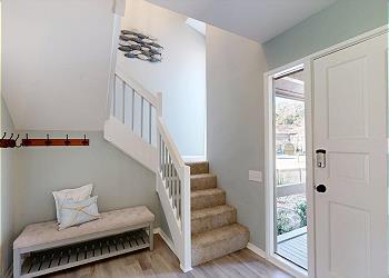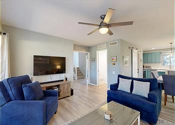 Get comfortable in your living room with a wall-mounted Smart TV, ample furniture and a large slider which grants access to your private patio. There is a half bath off the living room for anyone visiting you during your stay, or for ease of access.