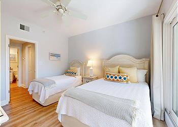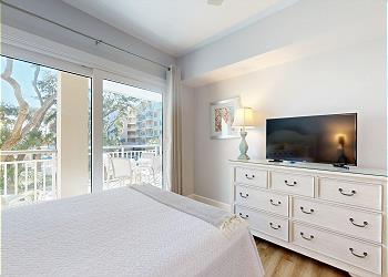 The primary bedroom has a king sized bed and 40" Smart TV. The en-suite primary bathroom has a large walk-in shower and walk-in closet. The guest bedroom has a queen bed and a twin bed, en-suite bathroom 40 inch smart TV. The balcony can also be accessed from the guest bedroom.