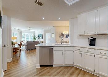 Easy access to the swimming pool, hot tub, children’s pool, sundeck and grilling area is right outside. Click on the Resort Amenities tab now to see the additional features and discounts on golf, pickleball, and dining you receive when you book this comfortable villa.