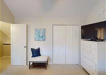 Sliding glass doors from the living and dining areas open to your large private deck, offering plenty of seating options for outdoor relaxation or dining al fresco.
