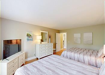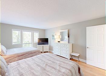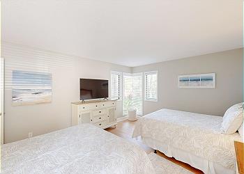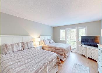 This spacious villa has been recently renovated and tastefully decorated in a coastal theme. It is perfect for families, golfers, and tennis players alike! This 2-bedroom villa features two primary suites that both have 2 queen beds, adjacent full bathrooms with tub shower combinations and HD TVs.