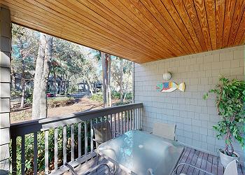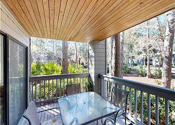 7833 Centre Court is located through the South Gate and then a quick right over the lagoon bridge, off Carnoustie Road. It's a very short (bike ride or walk) distance by path and walking bridge behind Alexander's to the heart of Palmetto Dunes Resort with the Hilton Head Outfitters Shop, Palmetto Dunes General Store, Alexander's Restaurant and more. It's a little farther to the beach by bike or by free seasonal Dunes Buggy shuttle.