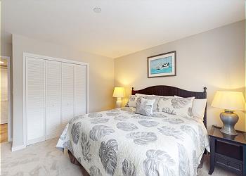 The first floor bedroom consists of a king bed, Smart TV and a newly updated en-suite bathroom. The bathroom is nicely updated with a granite-topped vanity and a custom-tiled walk-in shower!